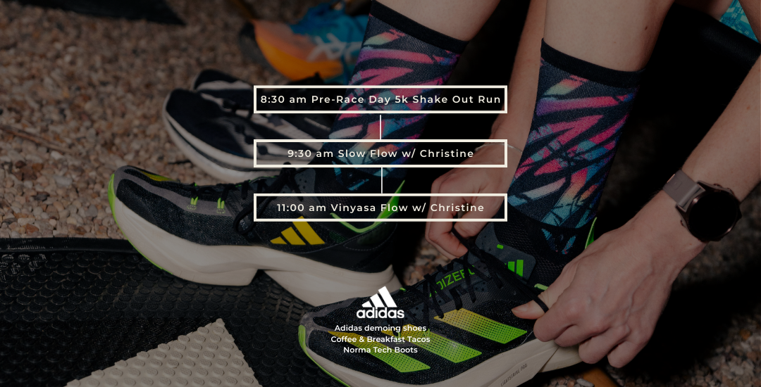 Join us for an exclusive pre-Austin Marathon pop-up experience at 918 & 920 Congress Avenue in downtown Austin. Start your morning with an optional 5K shake-out run at 8:30 AM, then recover with two yoga classes led by Christine Anderson at 9:30 AM and 11:00 AM. Your $30 ticket grants access to our recovery lounge, complimentary tacos and coffee, plus one month free access to the Sama Yoga House app. Demo Adidas running shoes while you refuel. Perfect preparation for race day.